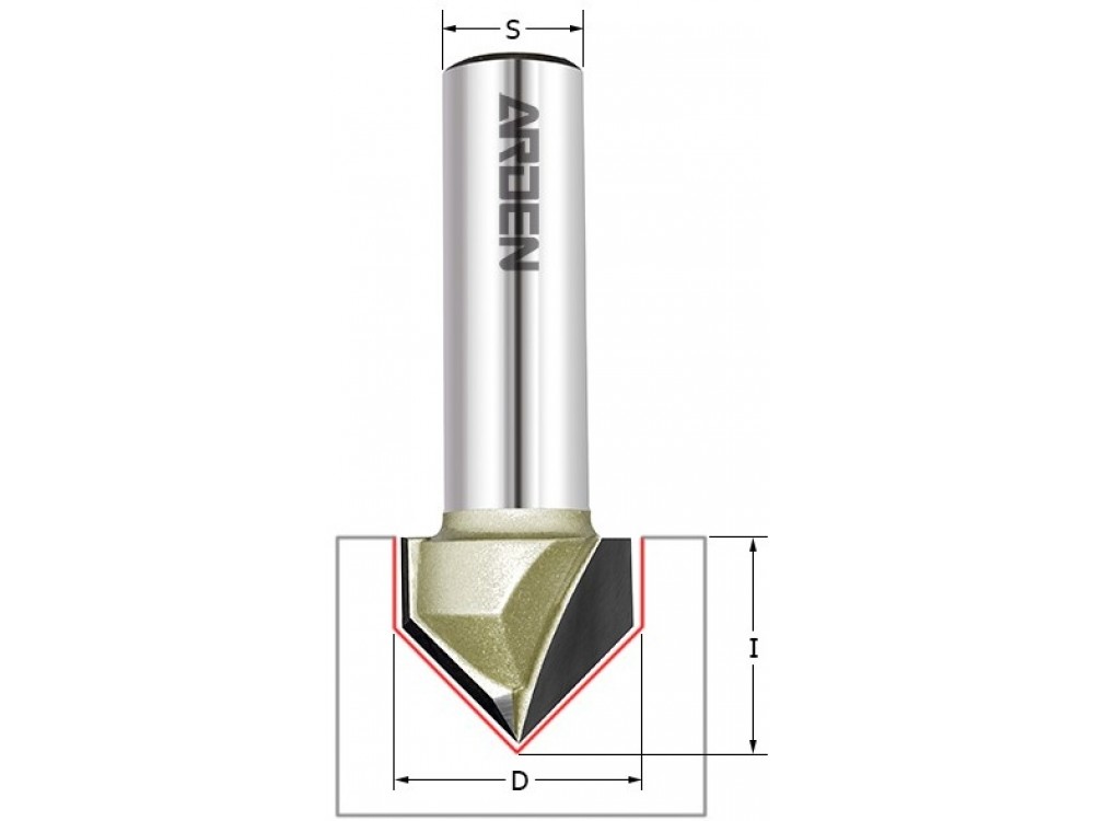 Фреза пазовая с углом 90гр. . Z2/HW/RH D=9,5 I=9,5, L=n/a, S=8