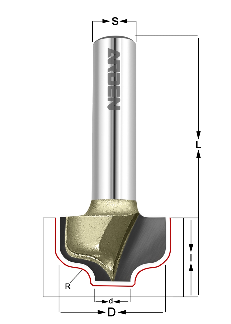 Фреза Гусёк Z=2 R=2 D=12.7 I=8, L=40, S=8..