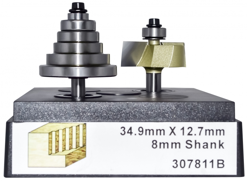 Четвертная фреза с набором подшипником предназначена для выборки материала глубиной от 0-12,7мм. В набор входят шесть подшипников позволяющих делать глубину врезания: 3.2, 6.35, 8, 9.5 и 12,7мм