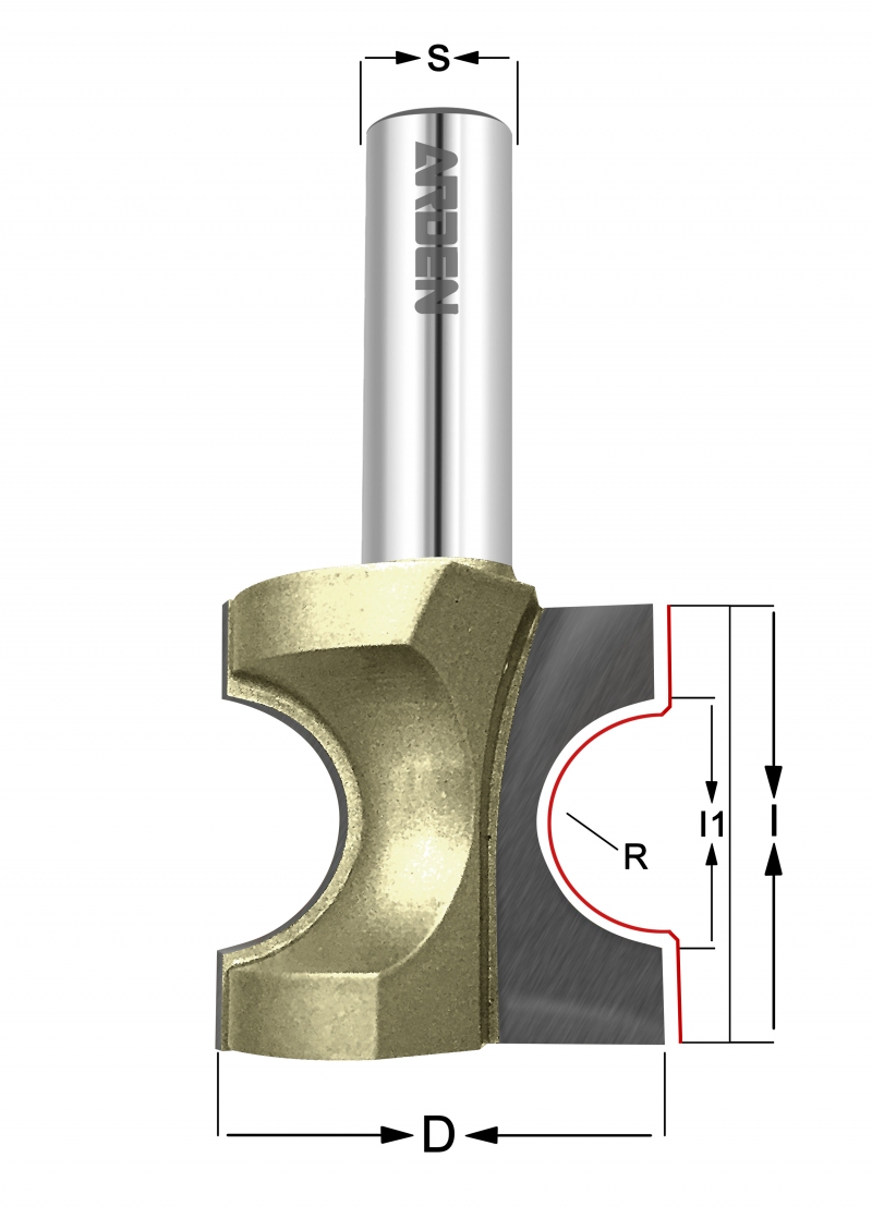 Фрезы радиусные ARDEN «Бычий нос» отличное решение для фрезерования торцов заготовок. С помощью данных фрез можно делать скругление на различных изделиях, такие как: столешницы, полки, подоконники, молдинги. Твердосплавные ножи из микрозернистого сплава позволяют работать фрезе чисто и долго