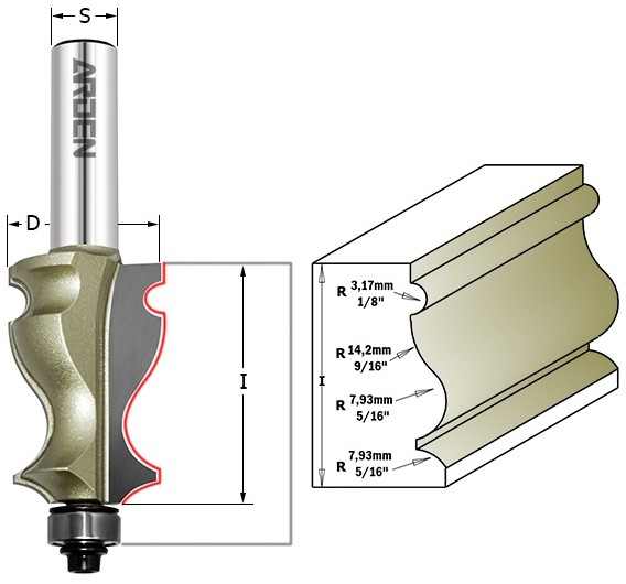 Фреза мультипрофильная ARDEN создаёт красивый карниз. Рекомендуется работать данной фрезой в несколько проходов